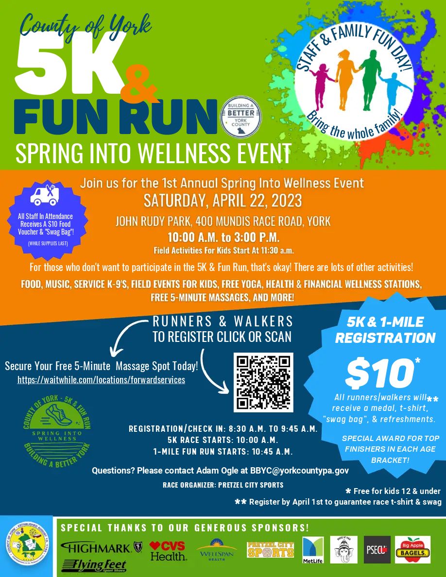 5K & 1-Mile Fun Run Spring Wellness Event Flyer